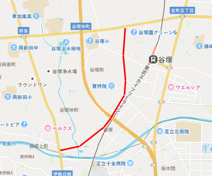 まずは「谷塚中央通り」。